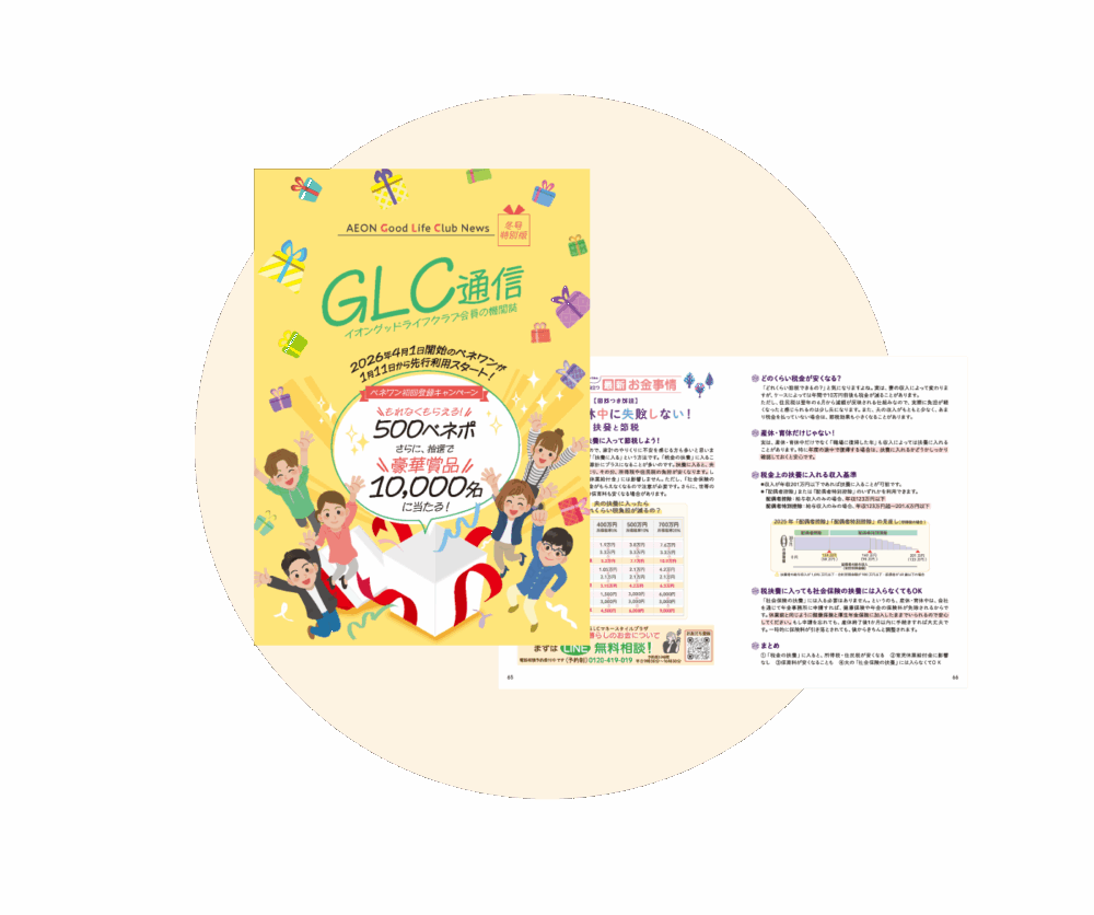 イオングッドライフクラブ会員さま専用のGLCマネースタイルプラザを運営しています。税金、年金、保険、扶養などのお悩みについて、会社の制度や福利厚生を活用した解決方法が見つかる情報サイトです。